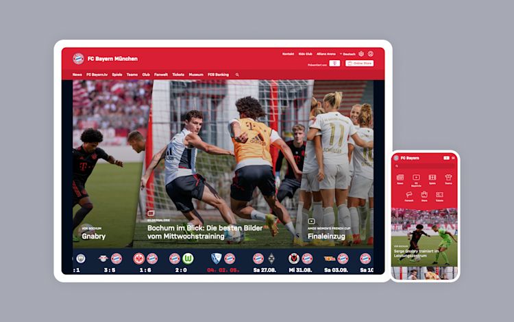 In the course of the relaunch of the FC Bayern München website www.fcbayern.com, we were commissioned to develop a clear and modern concept and design. We were also awarded the contract for the implementation of the frontend while retaining the existing content management system (CMS).